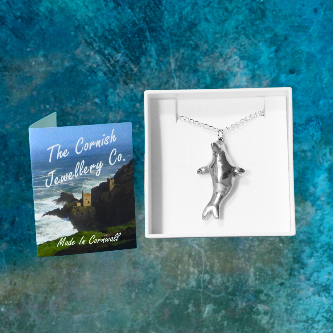 This beautiful, polished, pewter seal pendant was lovingly made for us by Martin, who used to run a local jewellery company. While his company has finished, Martin has agreed to continue to make these very special seals for us!Â