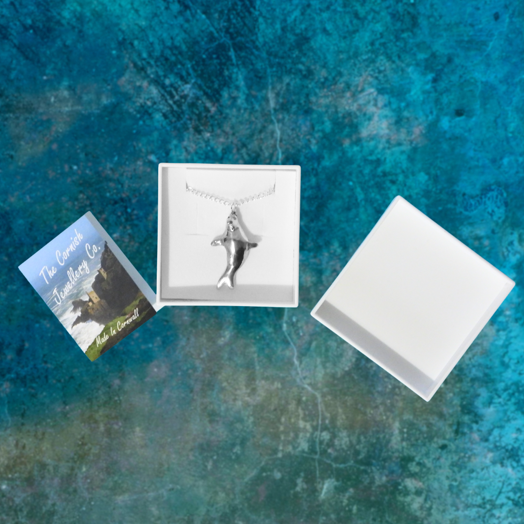 The pendant comes on an 18" (45cm) silver plated belcher chain and is supplied in a gift box, making it a wonderful gift or treat. The seal's width is approx. 22mm and the height is 35mm. The box is made from "Greenpack", a plant-based bioplastic designed as sustainable, biodegradable, and compostable alternatives to conventional, petroleum-based plastics. These materials are produced using a bio-hybrid resin, which can contain up to 70% plant starch, and are designed to degrade fully in approximately 15 months, leaving no toxic residues.Â