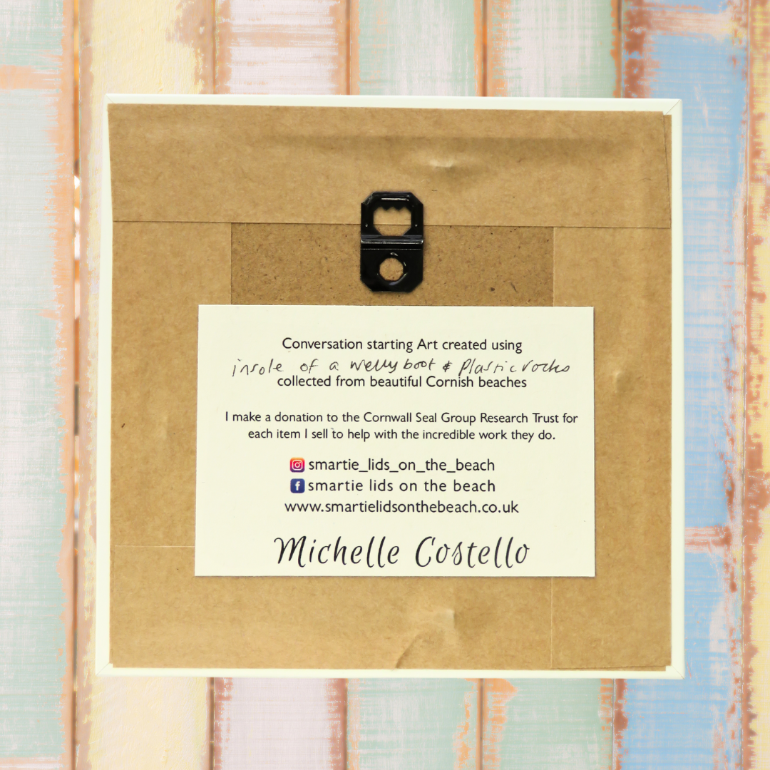 This lovely, lithe, long seal pup is a one-of-a-kind creation from talented artist Michelle Costello of Smartie Lids on the Beach! Amazingly, this long seal picture is entirely made from the insole of a wellie boot and plastic rocks, all found on Cornish beaches!
