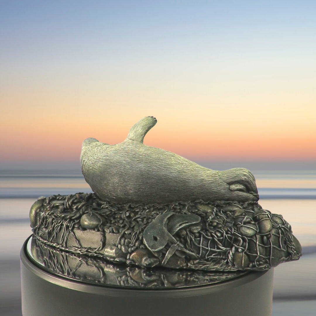 Inspired by the seal pups of Porthtowan - where Peter has monitored seals for us for more than a decade - this exquisite piece is the result of six years of refinement. A perfectionist at heart, Peter reworked the design countless times, drawing on thousands of hours of close observation to ensure anatomical accuracy, environmental realism, and an authentic sense of life as a pup on a Cornish cove. The sculpture is rich in detail: every claw is precisely shaped, the delicately folded rear flippers wrap snugly around the tail for warmth, and even the tiny eyebrow and whisker follicles are captured on its gentle, expressive face. The pup appears dreamy, relaxed and blissfully stretched out.